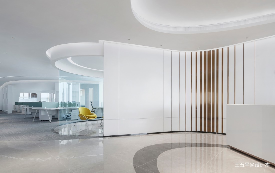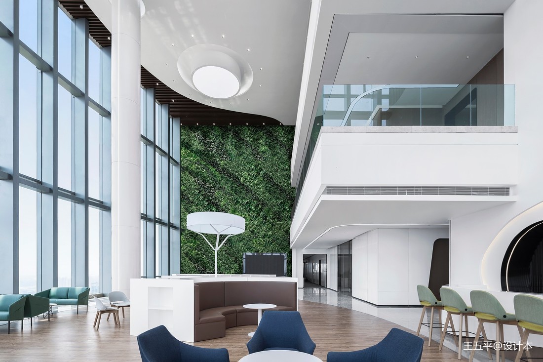本項(xiàng)目盤踞于南寧市五象新區(qū),恢弘大氣。室內(nèi)辦公大堂則延續(xù)了建筑風(fēng)格,糅合了科技與藝術(shù)的理念,以創(chuàng)新的手法抒寫現(xiàn)代化辦公國(guó)際風(fēng)貌。中空大堂的室內(nèi)有三層之高,四周柱子撐起了豪邁的空間風(fēng)骨,設(shè)計(jì)以白色為主色,搭配以綠、藍(lán)、褐,藉由造型和色彩的純粹性,帶來(lái)無(wú)與倫比的審美享受。